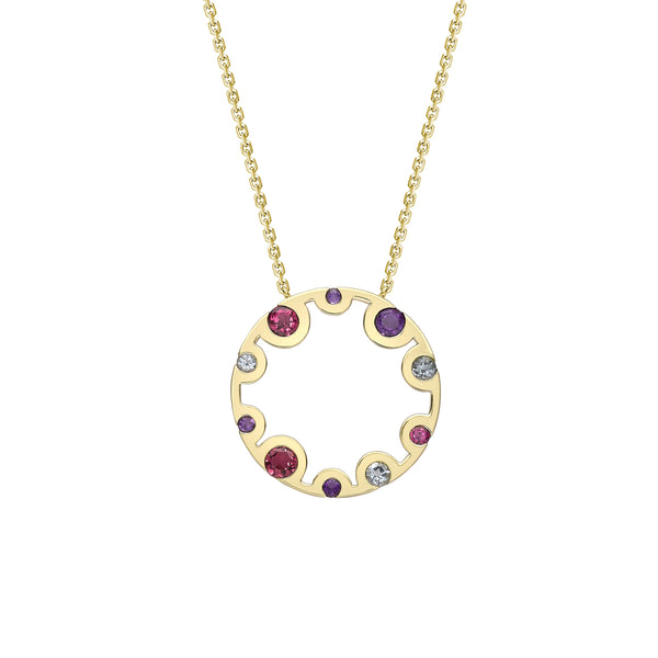 18K Yellow Gold Echo Multi Stone Circular Pendant